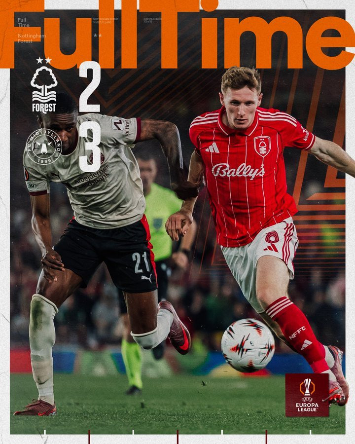 第24分钟,中日德兰再次领先。瑟伦森这一次自己进球,他头球顶进!身价只有500万欧元的瑟伦森表现真出色,传射建功。虽然此后诺丁汉森林接连换人调整,但是,却在第88分钟再度城门失守。比斯科夫推射破门,扩大比分。诺丁汉森林陷入了绝境。虽然最后时刻克里斯-伍德点球破门扳回一球。但时间所剩无几,诺丁汉森林没能再次进球。最终,诺丁汉森林2-3输给了中日德兰,爆出了大冷门,5.6亿欧元的豪阵也没用。