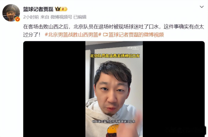 “客观来讲,视频中没有拍到有吐口水的情况,只听到雷蒙说的话,没有看到的情况我不能妄加评论,但一定有观众和北京球员发生了口角。如果真有人吐口水,支持现场安保和公安人员依法依规处理,该控制控制,该罚款罚款。一块臭肉,在任何时候都不应该毁掉一锅汤,这样的人一定会受到山西球迷的唾弃”。