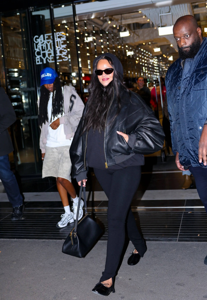 照片里,蕾哈娜一身休闲全黑装,身材状态略显臃肿,尤其是腹部隆起的弧度十分显眼。有网友调侃:“这肚子圆润得屏幕都快放不下了”,直接喊话“怀四胎实锤了”。