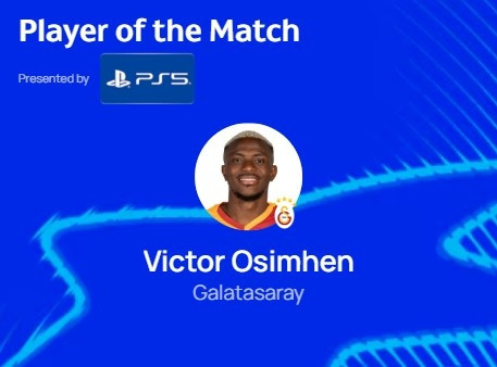 帽子戏法, 欧冠官方: 奥斯梅恩当选加拉塔萨雷3-0阿贾克斯最佳